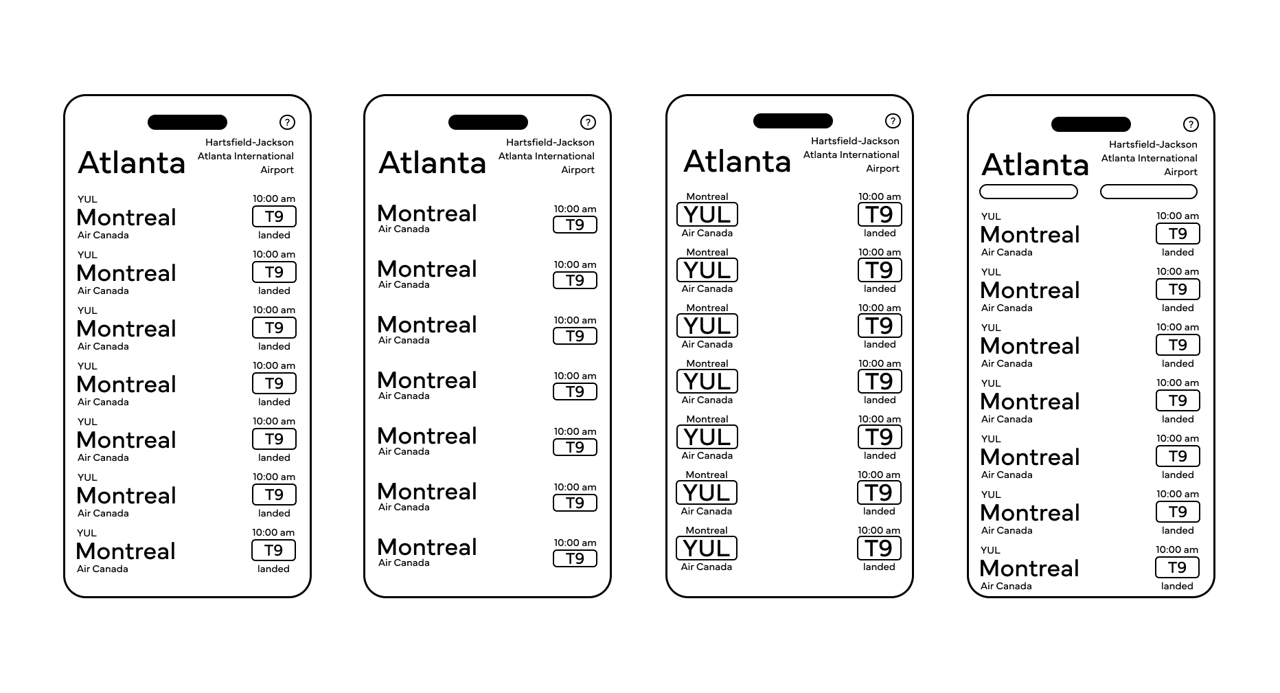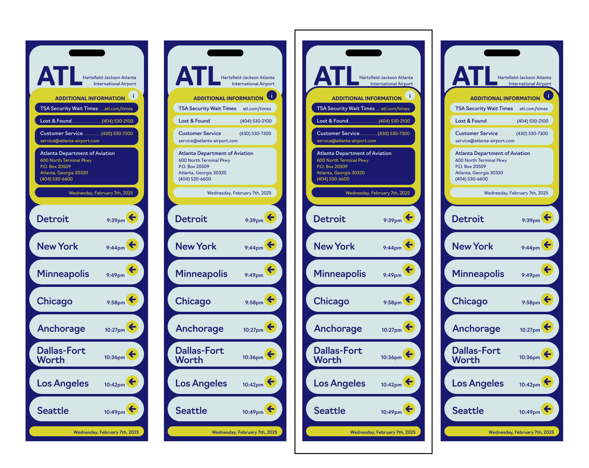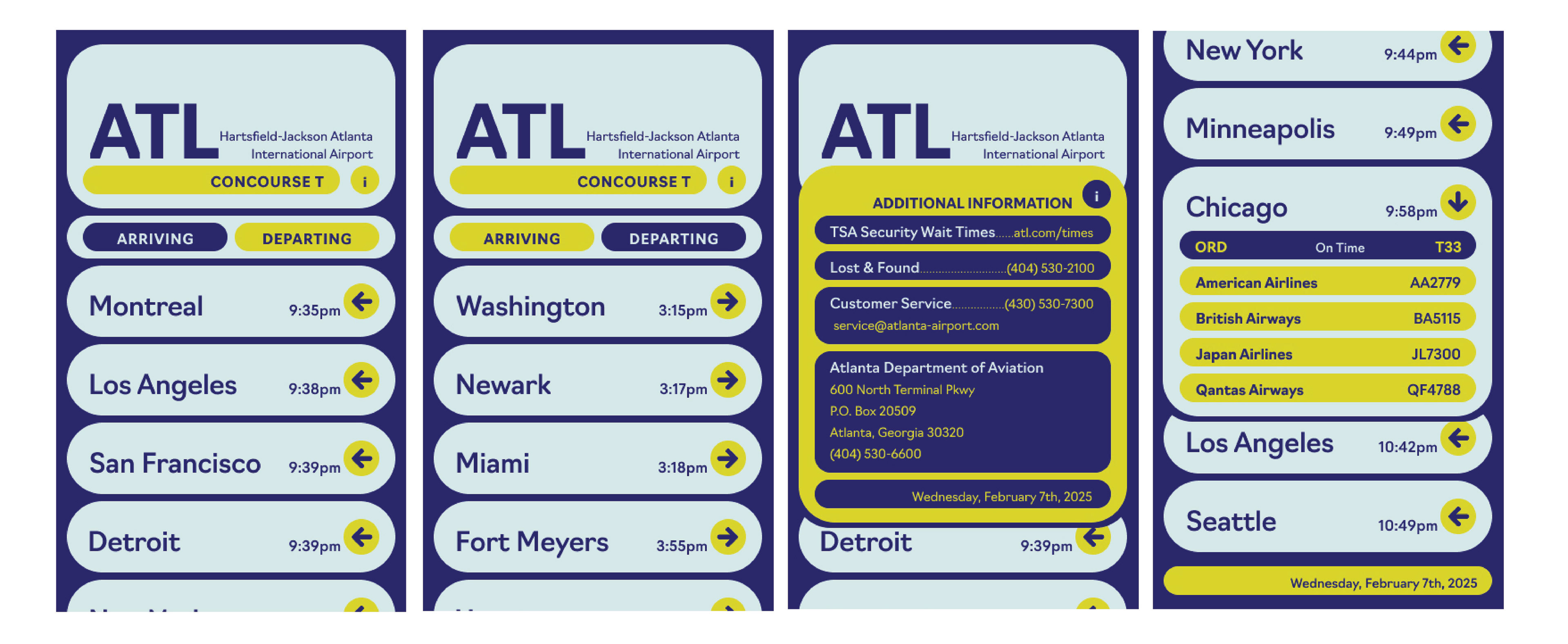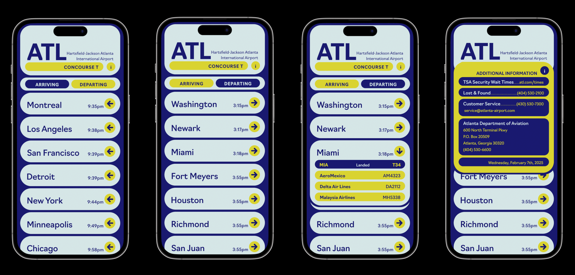 Objective: Create a hypothetical interface for the Hartsfield-Jackson atlanta International Airport app for an audience of relatively inexperienced Flyers