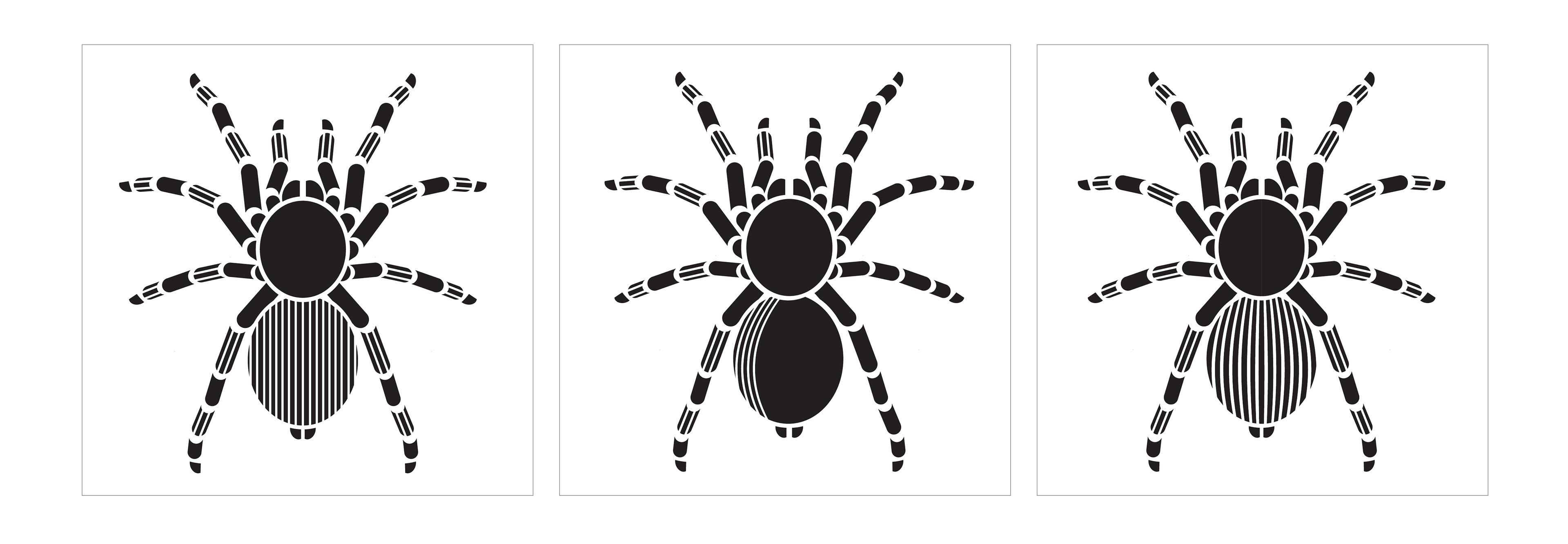 After deciding on a pose, I experimented further with the appearance of texture on the tarantula's back. After gathering feedback, I decided that the third option was the most effective option.